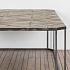 Размеры журнального стола Франсуа делают его удобным для использования даже в небольшой гостиной. Нестандартная геометрическая форма, металлические ножки и столешница, составленная из отдельных частей брашированного вяза.
