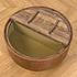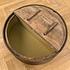 Столешница разделена на две полуокружности, каждая из которых поднимается. Под ними находится пространство, которое можно использоваться для хранения приятных вещиц, необходимых вам для релаксации. Столешница окружена цилиндром, отделанным натуральной кожей.