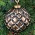 Стеклянный ёлочный шар черного цвета с эффектом патины отчасти напоминает еловую шишку. Лаконичный и стильный, он придаст новогоднему декору изысканную простоту и благородство.
