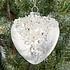 Ёлочная игрушка Белое матовое сердце с бусинами