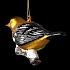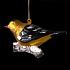 Стеклянная птичка с чёрно-жёлтым оперением опустилась на заснеженную ветку. Миниатюрная гостья не боится мороза, но предпочитает тепло гостиной, преображённой новогодним декором. Приветливая пернатая вот-вот зачирикает и возвестит начало длинных новогодних каникул.