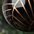 Лаконичный и элегантный набор из двух ёлочных шаров, покрытых узором, имитирующим кости рыбного хребта, придаст новогоднему декору стильность и изысканность. Стекло чёрного цвета изящно оттеняется белым и золотым тонко прорисованным орнаментом.