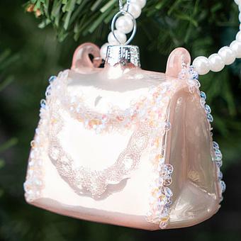 Ёлочная игрушка Серебристый шар с коралловым узором 2