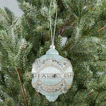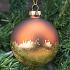 Изысканный стеклянный шар коричневого цвета украшен золотой краской, имитирующей эффект сусального золота. Он делает ёлочную игрушку похожей на драгоценный сосуд, в котором хранят вино, масло или благовония.