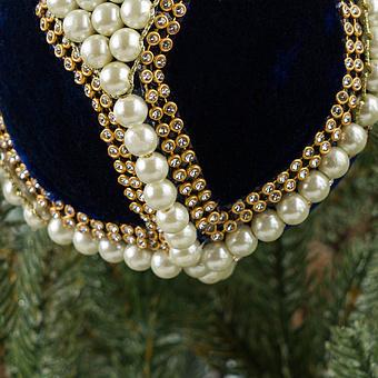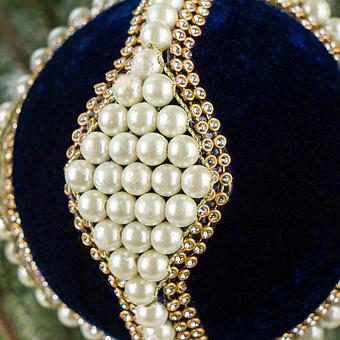 Пчела - излюбленный символ императора Наполеона - на этот раз украшает чёрный стеклянный шар, декорированный золотистым узором. Её окружают жёлтые и белые стразы, притворяющиеся лепестками цветка, который привлёк трудолюбивое насекомое.