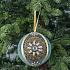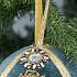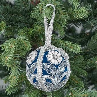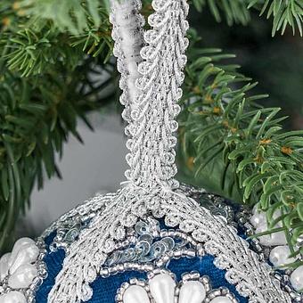 Ёлочная игрушка Синий шар с золотой вышивкой бисером