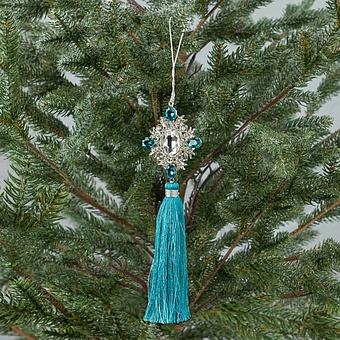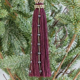 Игрушка из шелковистых нитей и страз способна привнести элегантную нотку даже в самый скромный наряд новогодней ёлки. А всё благодаря изысканному сочетанию сиреневого цвета, золотистого декора и аккуратной форме кисточки. Будет гармонично сочетаться с украшениями любого материала и стиля.