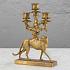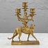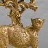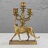 Изящный золотой подсвечник-канделябр на 3 свечи поражает своей роскошью и элегантностью. Художественное литьё привлекает внимание. Эффектная фигурка леопарда из металла поддерживает искусно выполненные нежные цветы-чаши для свечей. Растительный мотив прекрасно вписывается в идею подсвечника.