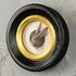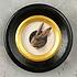 Оформление не менее впечатляющее: двойная круглая рама, чёрная снаружи и золотая внутри, создаёт эффект глубины и акцентирует внимание на центральном персонаже. Рама изготовлена из экологичного полилактида — материала растительного происхождения (кукуруза, соя, тростник) и окрашена вручную, что придаёт изделию законченный авторский вид. Даже задник выполнен в винтажном стиле — каждая деталь говорит о внимании к эстетике и уважении к ремеслу.
