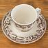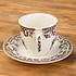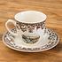Фаянсовая чайная пара практична и долговечна, с хорошей теплоудерживающей способностью, что позволяет сохранять напитки горячими. Чашка и блюдце покрыты слоем прозрачной глазури, которая надёжно фиксирует принт и предотвращает повреждение поверхности при использовании столовых приборов.