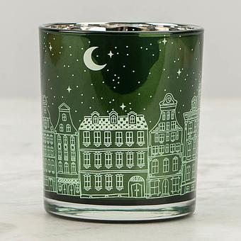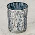 Декоративное стекло с изящным растительным орнаментом достойно украсит праздничное Новогоднее пространство. Отблески свечки заставят деревья танцевать в ночи.