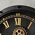 Золото на чёрном - это настенные часы Индастриал Антик с шестерёнками. Выразительный циферблат с золотыми римскими и вспомогательными арабскими цифрами, сложная система бесшумно вращающихся колёс механизма и круглая чёрная рама с лаконичными украшениями создают динамичный и обращающий на себя внимание образ. Бесшумный кварцевый механизм часов и работа от трёх пальчиковых батареек типа AA обеспечивает надёжность и долговечность в использовании. Часы балансируют между классическим и индустриальным стилями и станут значимым акцентом в любом интерьере.