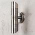 Лаконичное бра в стиле ретро-футуризма рассчитано на две лампочки. Круглое крепление и трубка из металла, украшенная резьбой, создают строгую и стильную композицию. Бра можно использовать как в помещении, так и на улице, на фасаде дома.