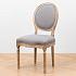 Овальная спинка-медальон родом из классицизма, резьба на дубовых ножках в стиле модерн и современная обивка из ткани нейтральных оттенков. Несмотря на смешение стилей, этот стул выглядит весьма гармонично и готов создавать в интерьере ощущение лёгкой изысканности, не претендуя на вычурность.