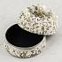 Привлекательная шкатулка со сверкающим узором изготовлена из качественных прочных материалов и имитирует жемчужины на высшем уровне. Филигранная инкрустация выполнена вручную с безупречным качеством и вниманием к деталям.
