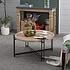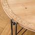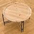 Оригинальный дизайн и контрастные материалы - это журнальный стол Касара. Круглая столешница из древесины пихты тёплого оттенка отделана по краю окружности объёмным узором. Чёрные железные ножки перекрещиваются и слегка выступают над краем столешницы. Стиль и изысканность этого журнального стола наверняка привлекут к себе внимание ваших гостей.