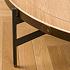 Круглая, совершенная форма этого журнального стола диаметром 87 см напоминает лесное озеро. Столешница из шпонированного дерева отделана кожей буйвола. Это тёплое сочетание контрастирует с тёмным железом ножек. Комбинируя журнальные столы Озеро размеров L и S, можно составить стильную композицию, которая преобразит вашу гостиную.