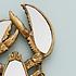 Прекрасные и необычные украшения мастерски выполнены вручную из прочного и долговечного полирезина. Замысловатый дизайн в виде фигурок птиц и насекомых в золотистом оформлении с использованием кусочков зеркальной поверхности смотрится элегантно.