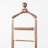 Вам поможет элегантная и удобная напольная вешалка Лондон. Она не займёт много места, на ней комфортно расположатся брюки, юбка, пиджак, сорочка или блузка. Напольная вешалка выполнена из светлого ореха со стильными металлическими вкраплениями. Она легко впишется в любой современный интерьер спальни.