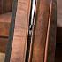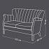 Мягкие закругленные линии подлокотников подчёркнуты двумя рядами латунных гвоздиков. Благородный цвет обивки хорошо сочетается с деликатным оттенком ножек из дуба, покрытых лаком.