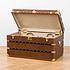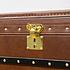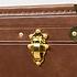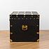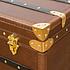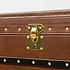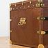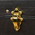 Поднимающаяся крышка снабжена металлическим замком и фурнитурой в стиле ретро. Замок позволяет хранить в этом необычном предмете мебели ценные вещи, бумаги или документы. На боковых поверхностях расположены металлические ручки в стиле ретро, с помощью которых сундук можно передвигать по комнате.