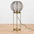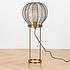 Настольная лампа, увенчанная сетчатым шаром, отчасти напоминающим воздушный шар, дополнит интерьер гостиной или кабинета. Изящный абажур опирается на четыре железные ножки золотистого цвета. Сфера абажура крепится к круглому основанию. Слегка футуристическая и, вместе с тем, очень уютная, настольная лампа из железа, покрытого едва уловимой патиной, элегантно смотрится и во включенном, и в выключенном состоянии.