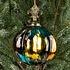 Шар диаметром 10 см выполнен из ртутного стекла глубокого синего оттенка. Глянцевая поверхность с характерным блеском и переливами эффектно отражает свет гирлянд, а металлическая королевская лилия завершает композицию, придавая ей нотку изысканности и аристократического шарма. Контрастное сочетание насыщенного синего и сияющего металла особенно выразительно смотрится на фоне густой хвои, добавляя интерьеру торжественности и игры света.
