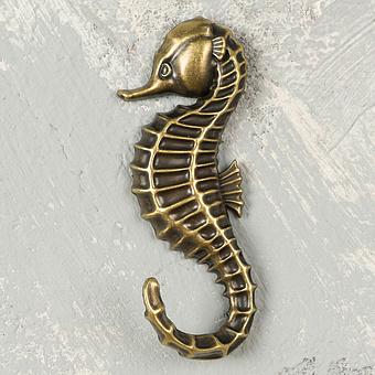 Уникальный крючок выполнен из металла латунного цвета с использованием ручного художественного литья. Идеально подходит для подвешивания любых аксессуаров в пространстве, особенно оформленном в морском стиле. Оригинальный способ повесить одежду, кухонные полотенца, ключи.
