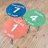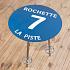 Круглая синяя столешница украшена надписями на французском языке: Ла-Рошет и Трасса. La Rochette - это бывшая коммуна в департаменте Савойя в регионе Овернь-Рона-Альпы на юго-востоке Франции. Этот горнолыжный курорт был на пике популярности в 70-е годы прошлого века. Синим цветом традиционно обозначается трассы для начинающих лыжников и тех, кто начинает чувствовать себя уверенно, и по сравнению с «зелеными» имеют протяженность как настоящие серьезные спуски.