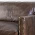 Путь от английской классики к современному европейскому дизайну этот трёхместный диван преодолел с лёгкостью. Прямые формы стали более мягкими, роскошь винтажной натуральной кожи сгладила некоторую жёсткость корпуса, а линия подлокотников подчёркнута рядом латунных гвоздиков, вбитых вручную.
