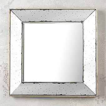 Квадрат, поделённый на четыре сектора, - так выглядит зеркало, призванное раздробить отражение на четыре самостоятельные реальности. Состаренный металл придаёт изделию винтажный оттенок.