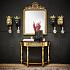 Изделие будет гармонично смотреться в современной квартире, если добавить оригинальные осветительные приборы в виде канделябров, тяжелые шторы из благородной ткани или какой-нибудь предмет мебели в том же стиле.