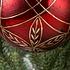 Элегантный шар диаметром 12 см насыщенного красного цвета украшен тонким орнаментом из золотистых линий и изящных листьев. Композиция дополнена изысканным декором из страз в верхней части, что придаёт изделию ещё больше торжественности и сияния.