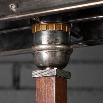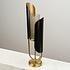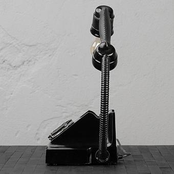Настольная лампа Модерн рождает ассоциации с двумя ладонями, обнимающими цветок. Гибкое чёрное железо бережно поддерживает стеклянный абажур цилиндрической формы. Сочетание трёх цветов: чёрного, золотистого и матово-белого рождает благородный и сдержанный образ. Утончённая форма светильника в стиле модерн позволит вписать его в интерьер в стиле ар-деко или современном. Сияние единственной лампочки смягчено двумя гибко изогнутыми железными пластинами, которые приглушают и направляют свет. Настольная лампа Модерн придаст завершённость убранству гостиной, кабинета, кухни-столовой или спальни.