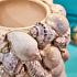 Потрясающая композиция из ракушек разных форм и оттенков на поверхности вазы привнесёт морскую свежесть в пространство. Возникают мечты о лазурных берегах и летних днях. Кроме цветов и сухоцвета можно использовать вазу в качестве органайзера для кистей, канцелярии, свечей, косметики.