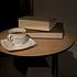 Изящная столешница в форме круга изготовлена из МДФ, облицована натуральным шпоном, нижняя часть окрашена эмалью. Основание столика выполнено из стали, покрытой порошковой краской. Металлическая поверхность - матовая, бархатистая, обладает повышенной прочностью, на ней не видны царапины. Основание обеспечивает устойчивость изделия, а пробковые подпятники защищают пол от повреждений. Крепежные винты под столом выполнены в чёрном цвете и на одном уровне с основанием, обеспечивая идеально гладкую поверхность, что делает безопасным контакт с элементами мягкой мебели.