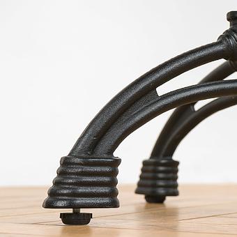 Изящная столешница в форме круга изготовлена из МДФ, облицована натуральным шпоном, нижняя часть окрашена эмалью. Основание столика выполнено из стали, покрытой порошковой краской. Металлическая поверхность - матовая, бархатистая, обладает повышенной прочностью, на ней не видны царапины. Основание обеспечивает устойчивость изделия, а пробковые подпятники защищают пол от повреждений. Крепежные винты под столом выполнены в чёрном цвете и на одном уровне с основанием, обеспечивая идеально гладкую поверхность, что делает безопасным контакт с элементами мягкой мебели.