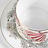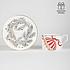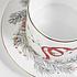 Чайная пара в бело-красной цветовой гамме с рисунком веток сосны на блюдце, ёлочными шарами и красной ленты на чашке выполнена из благородного китайского фарфора с утончённой позолотой. Новогодние предметы сервировки воплощают дух зимнего торжества, создавая ощущение уюта и волшебства.