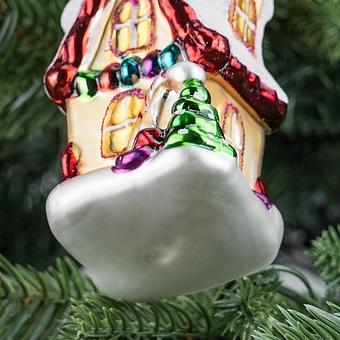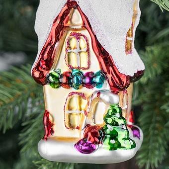Яркий, разноцветный дизайн добавляет настроения, а ручная роспись и тщательная проработка мельчайших деталей превращают игрушку в настоящее маленькое произведение искусства. Благодаря стеклянному материалу, изделие переливается в свете гирлянд, придавая ёлке особую элегантность и праздничное сияние. На вид — будто настоящий десерт: карамель, шоколад, глазурь, посыпка… Кажется, что этот домик можно съесть, словно торт из детской мечты.