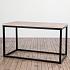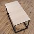 Металлический каркас чёрного цвета выигрышно сочетается со светлой столешницей из берёзового шпона. Слои древесины скреплены крест-накрест и формируют исключительно прочный кусок дерева, при этом создавая броский эффект на кромке стола. На верхнюю поверхность наклеен крепкий шпон натурального дуба, который очень интересно смотрится в сочетании с берёзовой фанерой.