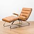 Этот предмет мебели также неординарен, как и кресло Номентано. Кожаная обивка простёгана горизонтальными полосами, а металлические ножки изящно выгнуты.