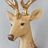 Голова благородного оленя с позолоченными рогами - самый вожделенный охотничий трофей. Новогоднее настенное украшение крепится к стене, он привнесёт в ваш новогодний декор атмосферу средневековых замков и осеннего праздника охоты. Голова оленя украшена красно-золотым орнаментом, а глаза смотрят с пониманием и надеждой.