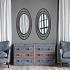 Сдержанная элегантность формы и исполнения. На искусственно состаренный затемненный металл струн нанизана череда шариков, похожих на черный жемчуг. Ожерелье вокруг зеркала.