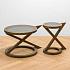 Компактный журнальный столик по силуэту отдалённо напоминает свернувшуюся в кольца змею. Но этот предмет мебели, выполненный из древесины ясеня и стекла, совсем не агрессивен, а скорее эксцентричен. Дизайн стола близок к эко-стилю. Перекрещивающиеся ножки и две окружности - в основании и столешнице - создают стильный и оригинальный образ. Ширина конструкции столешницы и нижнего основания из-за выступающей части ножки увеличивается до 47 см. Размеры позволяют использовать столик в качестве прикроватного.