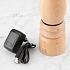 Работает от подзаряжаемых литий-ионных батареек (зарядка в комплекте). Разъём для подзарядки находится под верхней круглой частью мельницы. Имеет красный индикатор зарядки под набалдашником мельницы (после завершения подзарядки, примерно 3 часа, отключается). Одной зарядки батареек хватает на 4 полных резервуара соли.