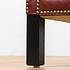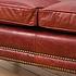 Натуральная кожа обивки красиво контрастирует с чёрными ножками. Чуть закругленные подлокотники и низ модели дивана подчёркнуты вручную вбитыми декоративными латунными гвоздиками. Чехлы с подушек легко снимаются, что облегчает уборку.