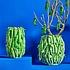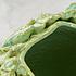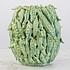 Керамическое изделие ручной работы представляет собой стручки гороха, полностью покрывающие поверхность пузатой вазы. Для создания уникального изделия мастер воспользовался роскошным цветом современной керамической глазури. Горох выглядит как настоящий.