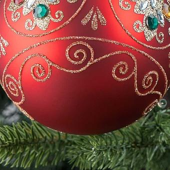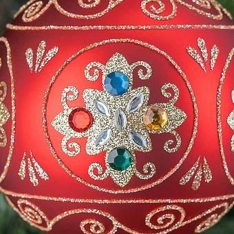 Напоминающий вышивку изысканного платья прекрасных венецианок эпохи Возрождения, этот фиолетовый шар, расшитый бисером - прекрасный образец стиля ар-деко. Миниатюрная ёлочная игрушка порадует вас и в Новый Год, и на Рождество.