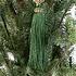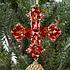 Новогодняя подвеска Рубиновый крест с зелёной кисточкой