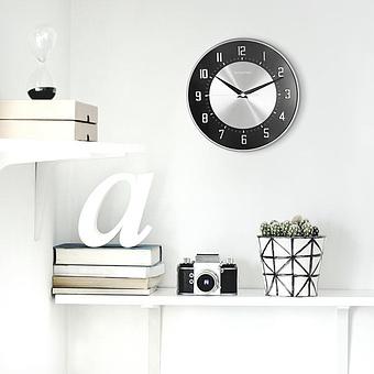 Настенные часы выполнены из высококачественных материалов, которые делают их практичными и долговечными. Показания часов чётко различимы из любой точки пространства. Изящные чёрные минутные стрелки и тонкая ярко красная секундная стрелка чётко вырисовываются на циферблате. Золотой обод добавляет элегантности. Часы с кварцевым механизмом работают от одной пальчиковой батарейки типа AA. Они подвешиваются с помощью кольца наверху.